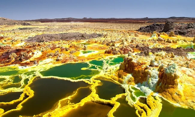 В Ефіопії є місце під назвою Даллол. Колись тут розташовувалося шахтарське поселення, проте зараз у це місто-примара не забредають навіть тварини. В усьому винні вулканічна активність, через яку середньорічна температура не опускається нижче 35 градусів.