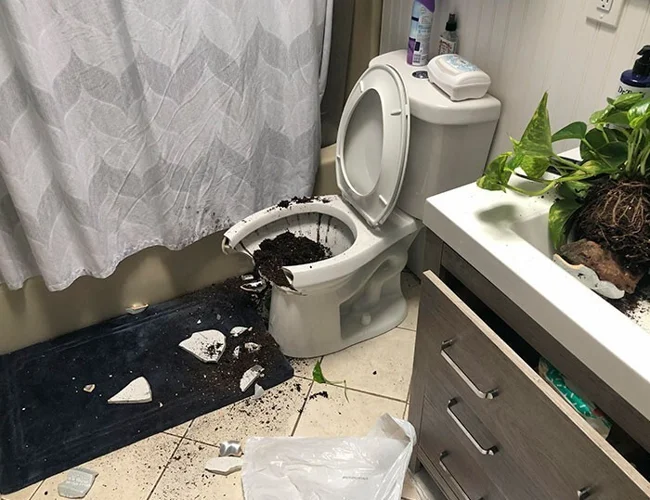 "Моя дружина принесла нову квітку в горщику, і поставила її на полицю над унітазом. Через годину ми почули дивний звук"