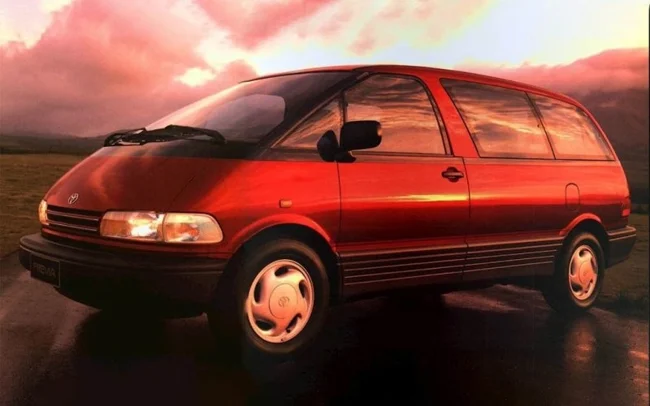 У 1990 році фірма Toyota представила Toyota Previa - великий 7-місний сімейний мінівен в округлому дизайні. Автомобіль відрізнявся вкрай незвичайним, для машин подібного класу, компонуванням. Його двигун розташовувався над передній частині, зазвичай, а межах бази — за передньої віссю. Таке своєрідне компонування було викликане бажанням конструкторів зробити салон якомога просторішим, при цьому зберігши довжину машини в межах п'яти метрів.