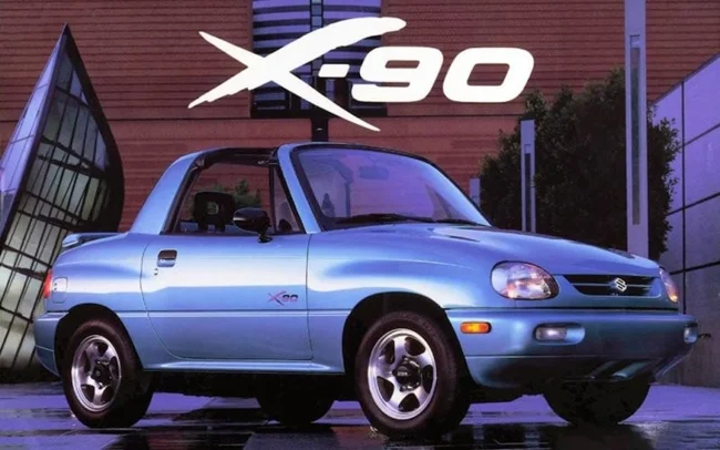 Suzuki X-90 - був свого роду експериментом під час якого фірма Сузукі намагалася промацати нові ринкові ніші в класі компактних позашляховиків, що стрімко зростає. Автомобіль з'явився в 1995 році і фактично був перелицьований, короткобазний варіант популярного Suzuki Sidekick. Тобто в активі автомобіля були: хороший 16-клапанний двигун потужністю 95 к.с., повнопривідна коробка з жорстко підключається переднім приводом і рамне шасі з незалежною передньою підвіскою.