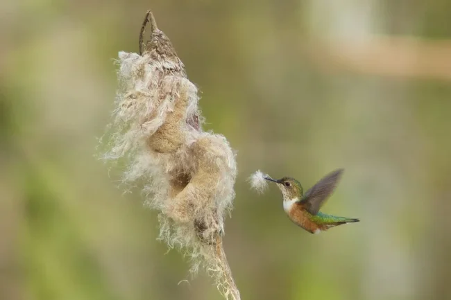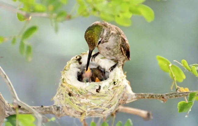 Павуки, напевно, не в захваті від того, що колібрі нахабно крадуть у них будматеріали, але особливо незадоволених майбутні матусі просто з'їдають — пернаті із задоволенням розбавляють свій квітково-нектарний раціон білковою закускою. Коли маленькі «бджолибри» з'являться на світ, два тижні їх доглядає родителька, а потім вони на повну вчаться літати. Незабаром малюк розміром з нігтик перетворюється на змужнілої птиці.