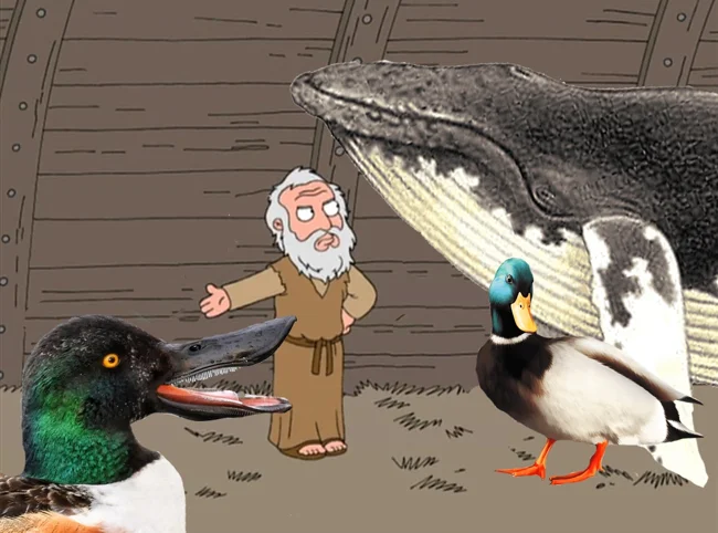 — Це що таке, я вас питаю? - Кричав Творець, вказуючи на коробку. Кур'єр не відповідав, опустивши погляд у підлогу. Так облажався із замовленням по збиранню крякв: частина деталей виявилася із шлюбом, а частина — взагалі від моделі «Кіт». Автор подивився на годинник, зітхнув і почав збирати з того, що було. Так і вийшов новий вид птахів схожих на крякву, але з величезним шнобелем і максимально упораним, — це диво природи називається широконоскою.