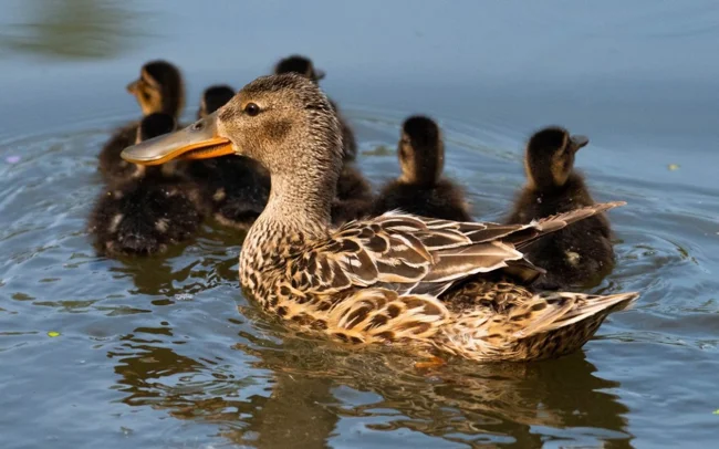 А ось у розмноженні у широконосок все стандартно. Самці залучаються самочок, а після того, як зробили свою справу, збиваються в холостяцькі тусовки та линяють на линяння. Мамочка порається з потомством самостійно.