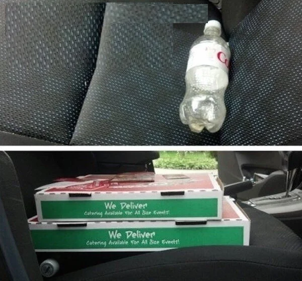 Покладіть на сидіння пляшку з-під води, а зверху покладіть піцу: так начинка за час дороги не з'їде на один бік
