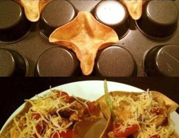 Переверніть силіконову форму для кексів - і ви отримаєте чудову форму, щоб випікати кошики для салатів