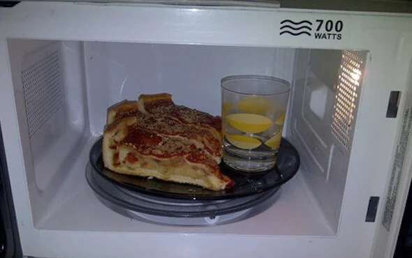 Розігріваючи піцу в мікрохвильовій печі, поставте поруч склянку з водою: так хрумка скоринка не стане клеклою