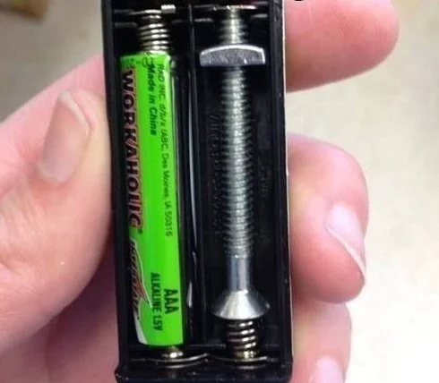 Якщо раптом у вас виявилася лише одна батарейка на заміну, використовуйте замість другої шуруп: він замкне ланцюг, і в пульті чи ліхтарику з'явиться струм