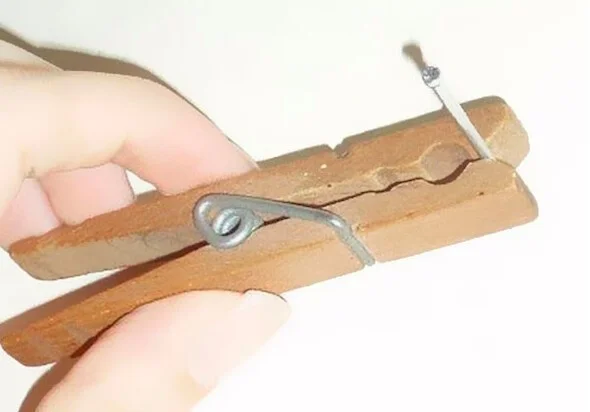 Забиваючи цвях, тримайте його прищіпкою: так пальці будуть у безпеці