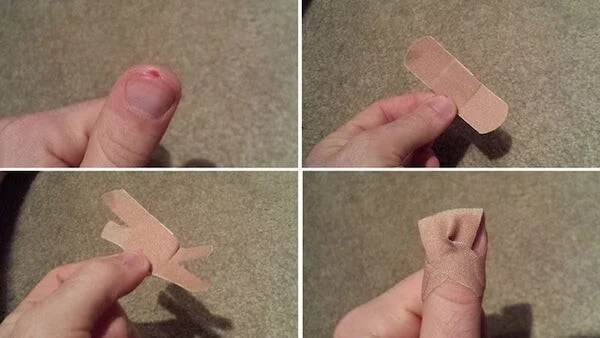 Цей спосіб допоможе заклеїти ранку у верхній частині пальця, і пов'язка не звалюватиметься