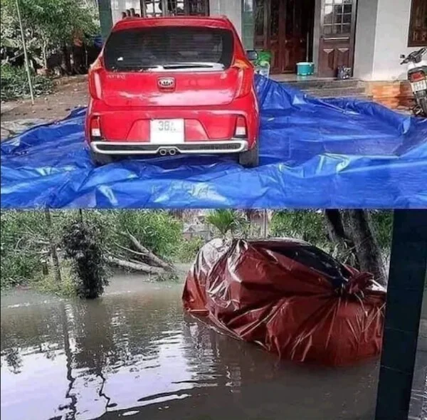 Якщо у вас нерідкі підтоплення, навесні оберніть машину знизу в щільний будівельний поліетилен: так ви оберігайте її від підйому води