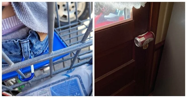 За допомогою карабіна можна надійно і безпечно зафіксувати маленьку дитину в магазинному візку: так вона нізащо не випаде