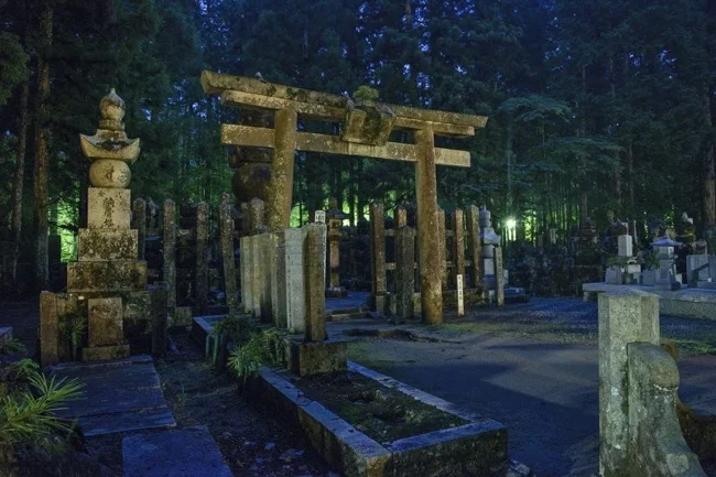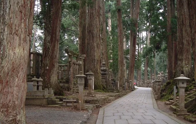 Це найбільший цвинтар у Японії. Тут є близько 200 тисяч буддійських ченців, а також відомий культурний і політичний діяч Кукай.