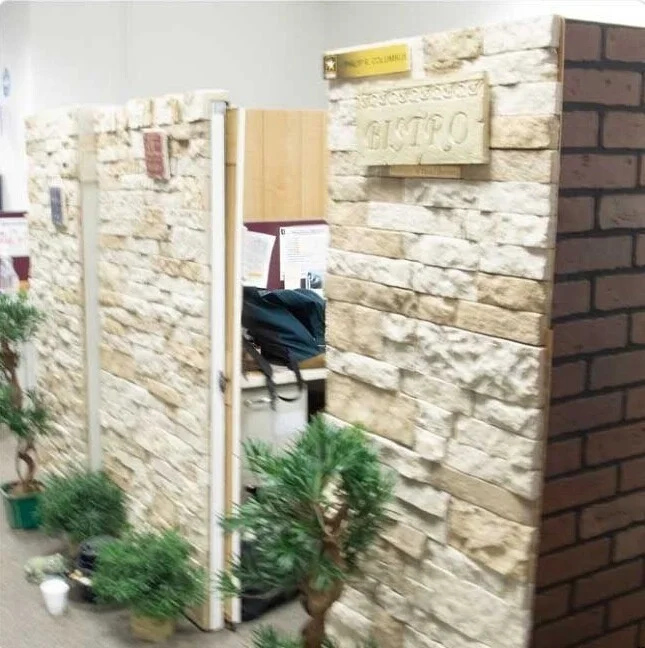 "Це було моє робоче місце. Пізніше колеги додали мені табличку "Бістро", гарні стільці та пляшки безалкогольного вина"