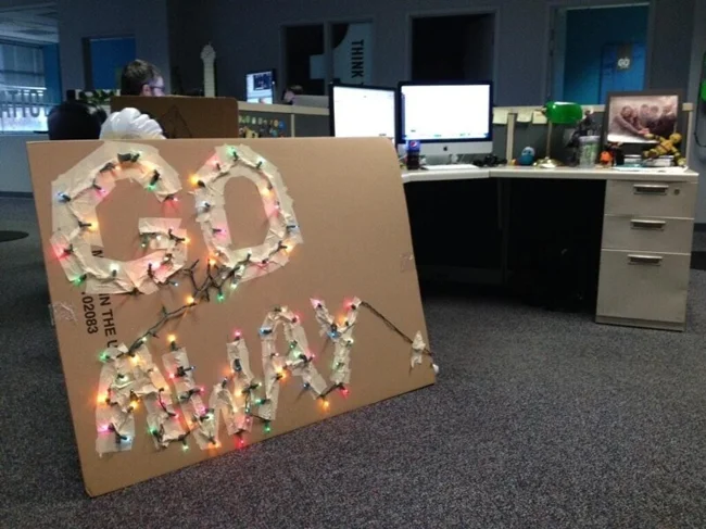 "Мене теж попросили прикрасити робоче місце. Зробив табличку, яка передає мій внутрішній стан - "Ідіть геть"