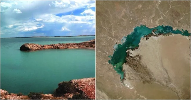 Озеро схоже на півмісяць або бумеранг, що звужується посередині. Середина озера - це протока шириною приблизно 3 км, що з'єднує різні частини озера. Солона і прісна половини ніколи не перемішуються і цей феномен вчені поки що ніяк не можуть пояснити.