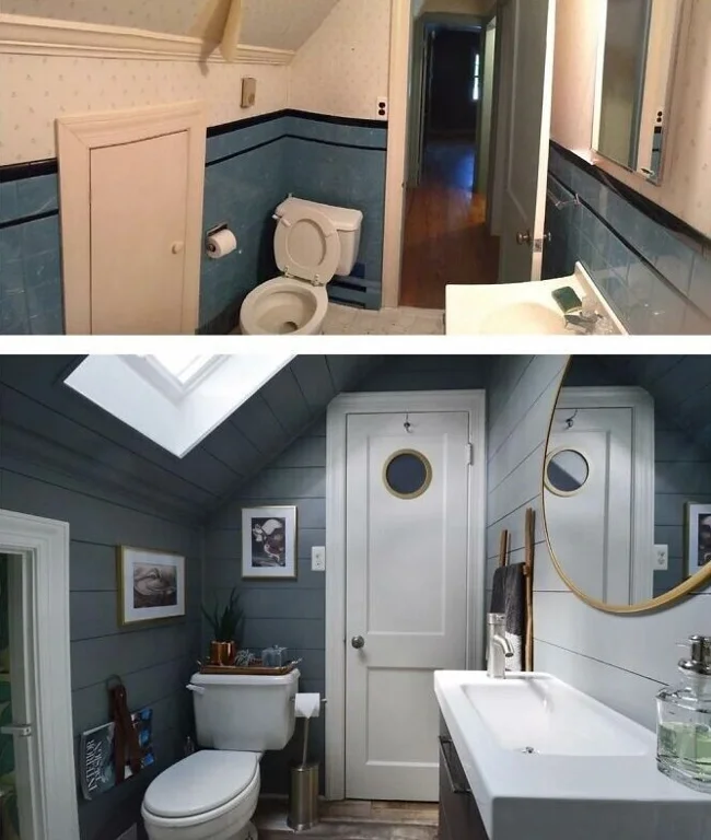 18. "До та після ремонту в невеликій ванній кімнаті"