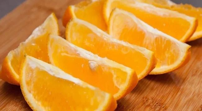 Наріжте стиглий невеликий апельсин кільцями або півкільцями.