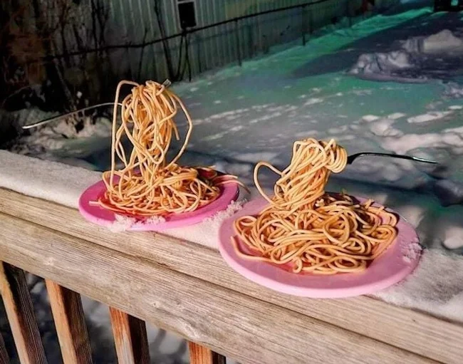Замерзлі на морозі спагетті в Північній Дакоті, США ![]()