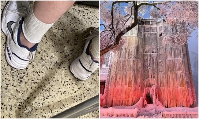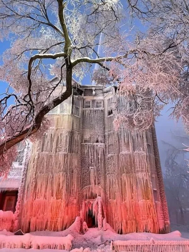 Цей будинок спалахнув, і пожежники довго його гасили. Наступного дня, при -31 на вулиці, він перетворився на льодяник