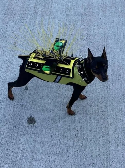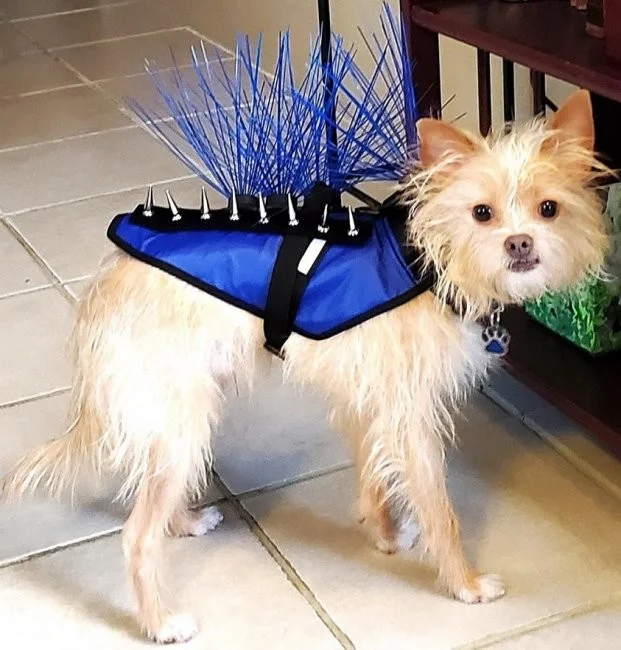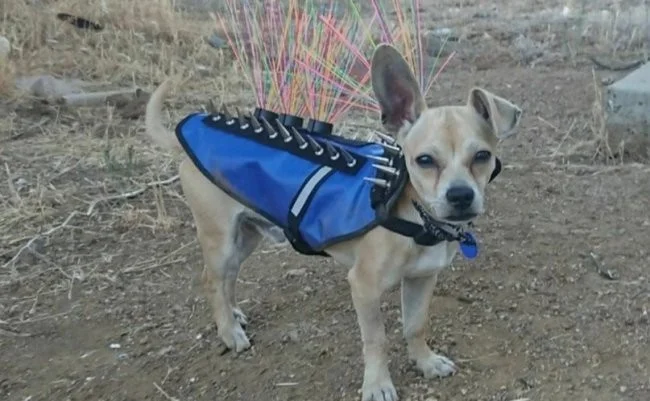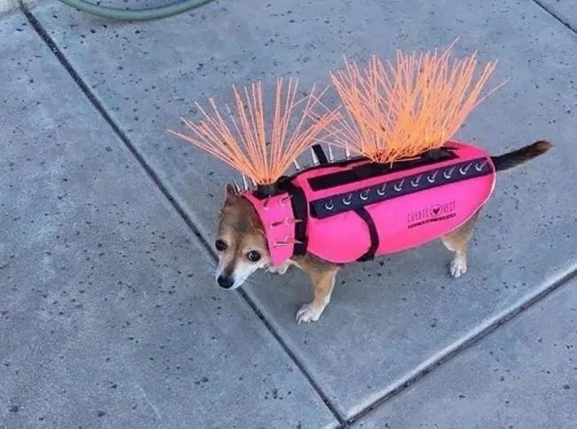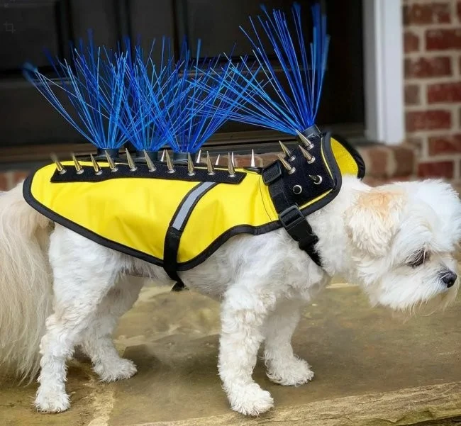 У США були випадки як яструб пікірував на очах у однієї сімейної пари на їхнього маленького вихованця той-тер'єра. Після цього випадку господарі вигадали якийсь захисний костюм для своїх тварин від великих хижих птахів, які бачать у них видобуток і часто полюють на маленьких собак. Такий захист виготовлений з міцного кевлару або полікарбонату, який виготовлений з такого ж матеріалу, що і куленепробивне скло, в доповненні з шипами з нержавіючої сталі.