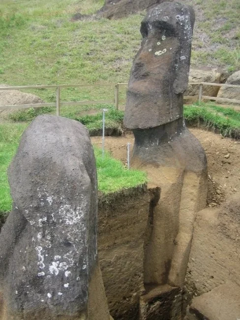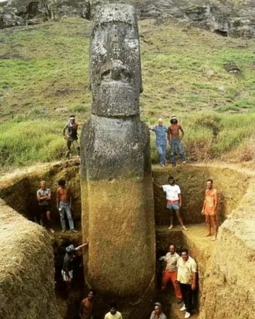 На цих фотографіях ви бачите частину статуї моаї на острові Великодня. Офіційна версія свідчить, що вони були побудовані аборигенами в період з 1250 по 1500 роки. І як виявилося це не тільки голови, у статуй є тіло пристойних розмірів, яке більша частина знаходилася в грунті, глибоко під землею. І найцікавіше немає жодних відомостей про їхнє пересування островом і на острів. Від Великодня до найближчої густо населеної цивілізації 3800 кілометрів, це південна Америка.