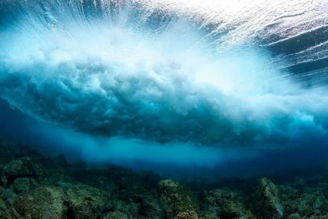 В океані вода на стільки чиста і якщо подивитися на хвилі з-під води ви побачите дивовижне видовище, яке не щодня зустрінеш. Ці цікаві фотографії зроблено на дні океану на різних глибинах.