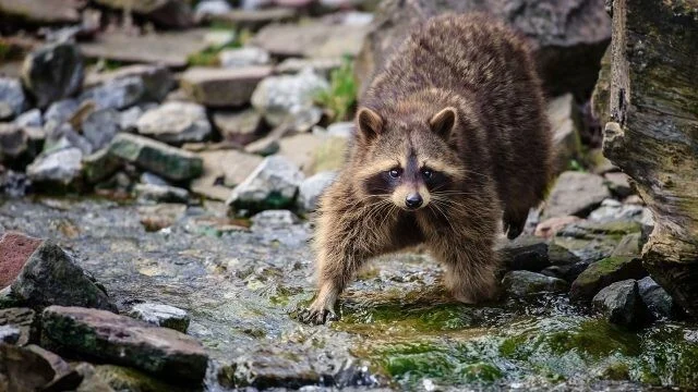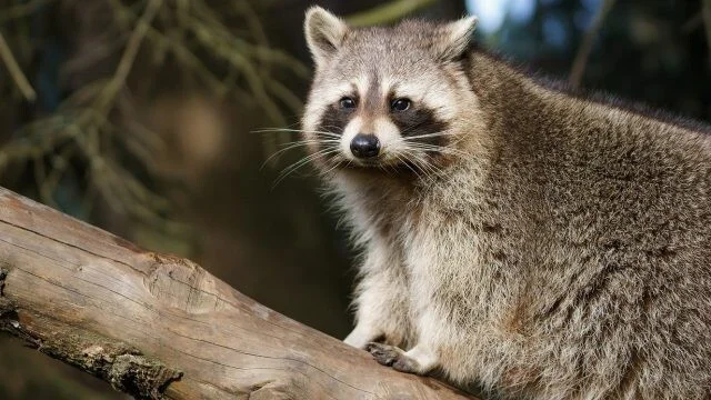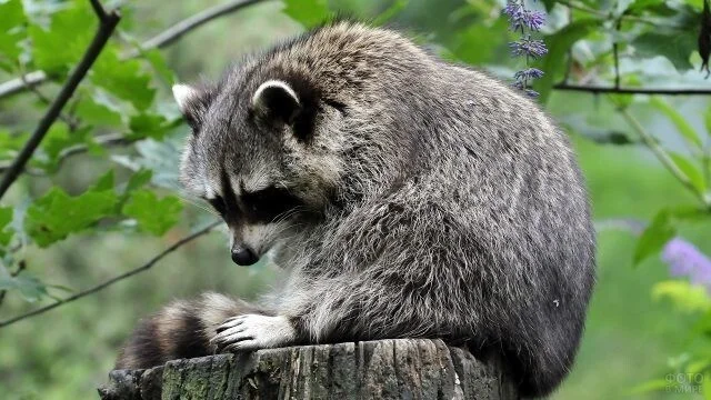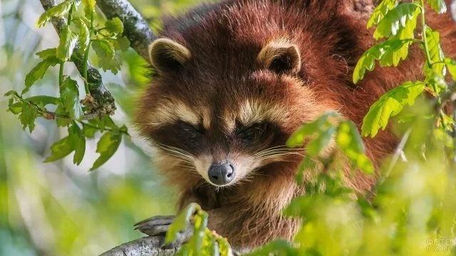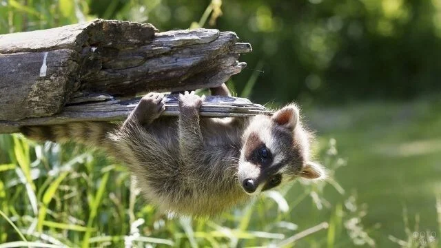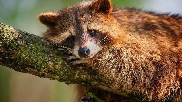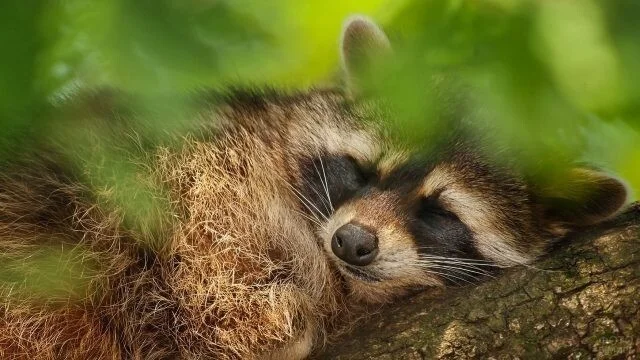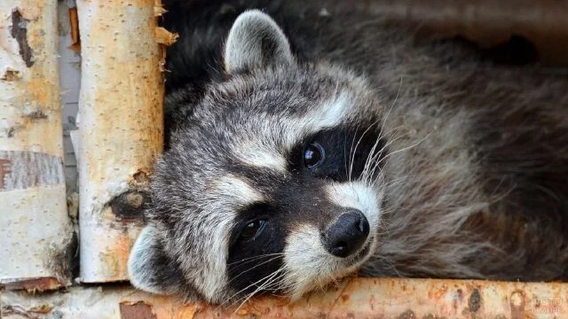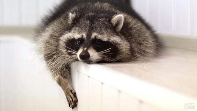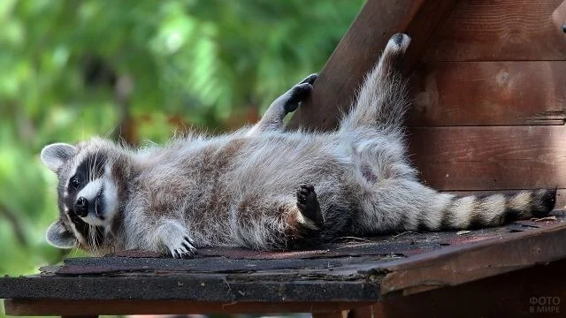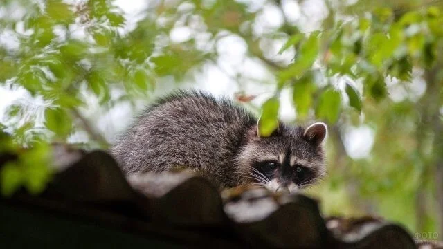 Смішний єнот-смужка вальяжно розлігся на даху.