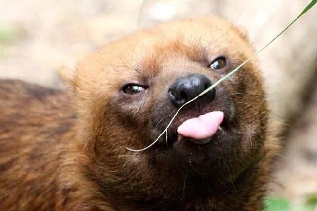 А між іншим воно зустрічається ще в стародавніх епосах, казках та історіях, є навіть відомості, датовані трьома мільйонами років тому, про це говорять знайдені скелети та черепи. Взагалі нагадує звичайний двірняк, тільки на коротеньких лапках. А з боку морди схожа на маленького ведмедя.