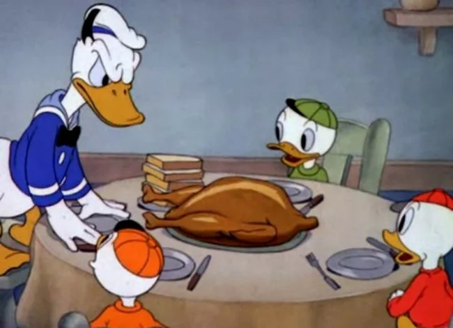 Дональда Дака неодноразово звинувачували у канібалізмі. Особливо після серії, де герої їдять птаха на День подяки. Проте страва виявилася традиційною індичкою, хоч і цей факт трохи бентежить.