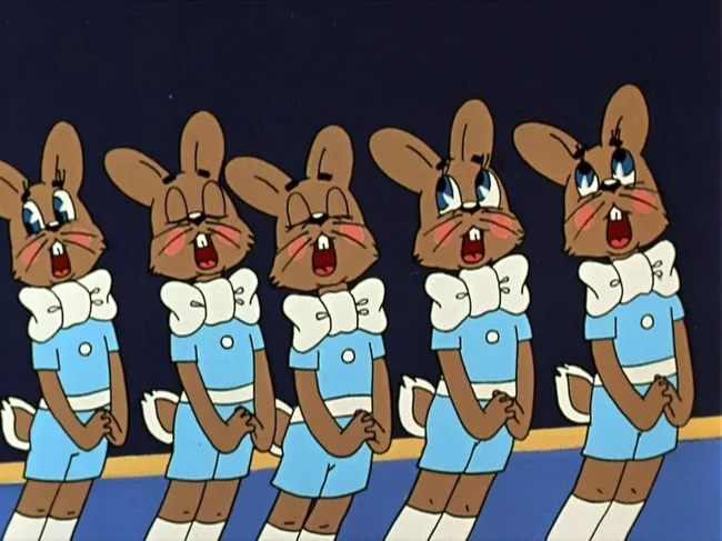 Те саме питання виникало і щодо зайця з «Ну, постривай!». Хоча тут відповідь також очевидна, хоча б тому, що герой співав у хорі «хлопчиків-зайчиків».