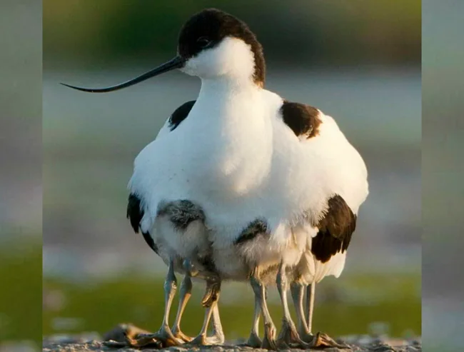Не лякайтеся, просто шилоклювка гріє своїх пташенят у себе під крильцем.