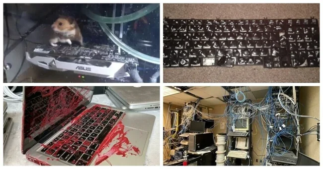 З чим тільки не доводиться стикатися співробітникам служб з ремонту та техпідтримки! В онлайн-спільноті Tech Support Gore зібрано масу курйозів та невдач, пов'язаних з нашим золотим віком технологій. Гнізда з кабелів, пластик, що горить, хом'яки в системному блоці - це лише верхівка айсберга.