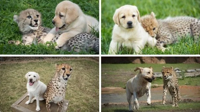 У деяких зоопарках гепарди мають собаки для емоційної підтримки. Вони проводять час і грають разом – собаки допомагають пом'якшити полохливий та тривожний характер гепардів.