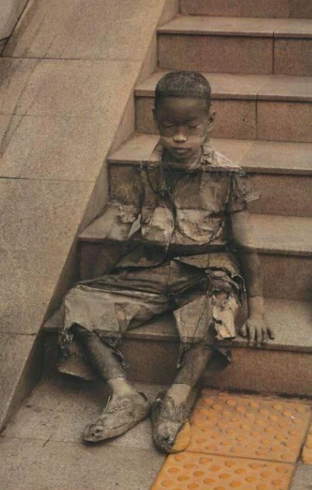 "Невидима бідність" - вуличний малюнок Кевіна Лі. Він зобразив дитину на сходах, на яку без роздумів наступають - щоб проілюструвати, наскільки непомітними можуть бути бідняки, що мешкають серед нас