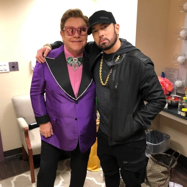 Поки Емінем проходив реабілітацію від наркотичної залежності, Елтон Джон часто дзвонив йому та підтримував. У 90-х він сам переміг пристрасть до кокаїну та алкоголю