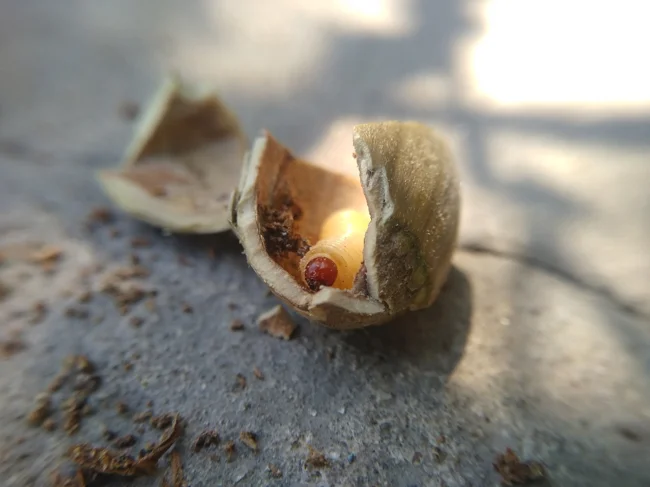 Усередині шлунка м'ясисті личинки бенкетуватимуть цілий місяць, поки не з'їдять весь вміст. Набравши масу, вони підуть у ґрунт за допомогою гравітації. У земліці личинка влаштовує м'яку колиску і заляльковується, щоб нести страх і жах серед садівників та дерев!