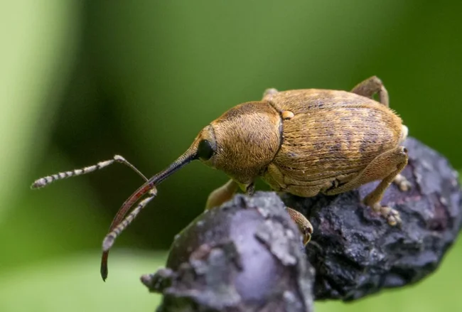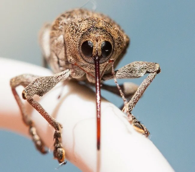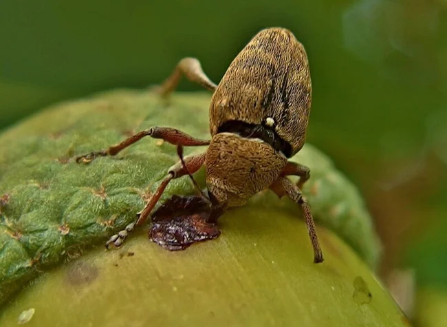 Горіховий довгоносик: Комаха в масці чумного лікаря. Цей шкідник знищує до 80% врожаю жолудів.