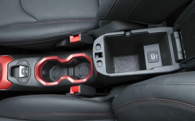 А це сюрприз для власників компактного кросовера Jeep Renegade – у чорному обрамленні вітрового скла їде стилізований військовий міні-Вілліс. А ще його власники, напевно, вже розглянули топографічну карту пустелі Мохаве (штат Юта), яку дизайнери зобразили на килимку в ніші під центральною консоллю.