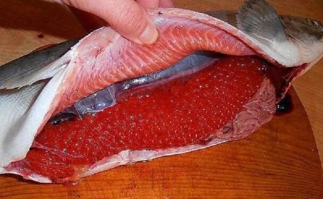 Потрошити лосося, а раптом бонус у вигляді величезної кількості ікри.
