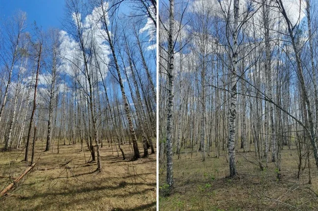 Завдяки шовкопряду рязанський березовий гай у червні виглядав ось так.