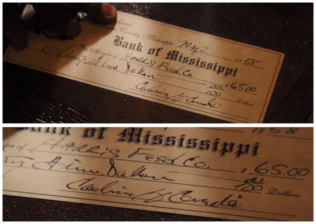 9. У "Джанго звільненому" Стівен виписує чек. Однак у різних кадрах цей чек з різними сумами