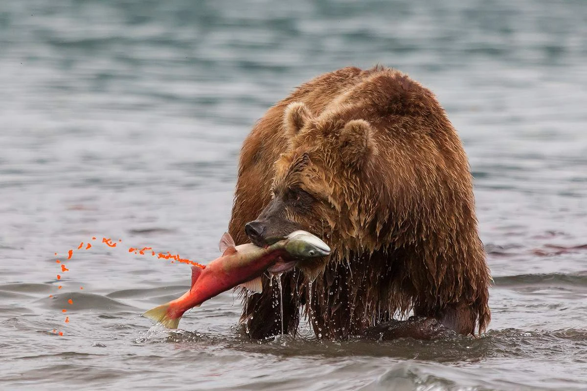 Ну гаразд, я трохи переборщив із нагнітанням. Ведмеді, які вийшли зі сплячки, переймуться до нас співчуттям. Вони подивляться на наші стрункі тіла, зрівняють зі своїми схудлими боками і вирішать, що ми теж добре витратилися за зиму. Але чим ближче осінь, тим більшою буде різниця між нами. До першого снігу бурі ведмеді складаються із жиру на 30-40%. Менше запасів роблять ведмедики з європейських тайгових лісів, більше — гризлі та камчатські ведмеді. Останні зручно влаштувалися на нерестових шляхах риб та отримали можливість збирати нехилу данину за право проходу.