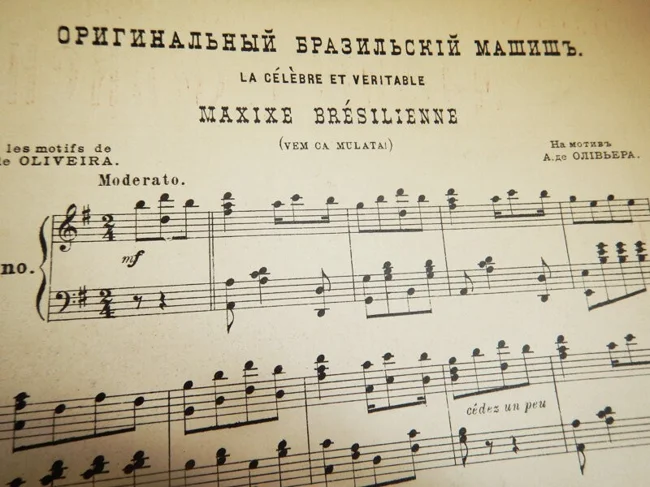 І, до речі, про музику. Спочатку як музичний супровід карнавалу використовувалися португальські народні пісні, і, лише через якийсь час і, ймовірно, слідуючи модним віянням, вони стали чергуватись з полькою та італійськими карнавальними ритмами. З 1870 до них додався ще й новий бразильський музичний стиль "maxixe".