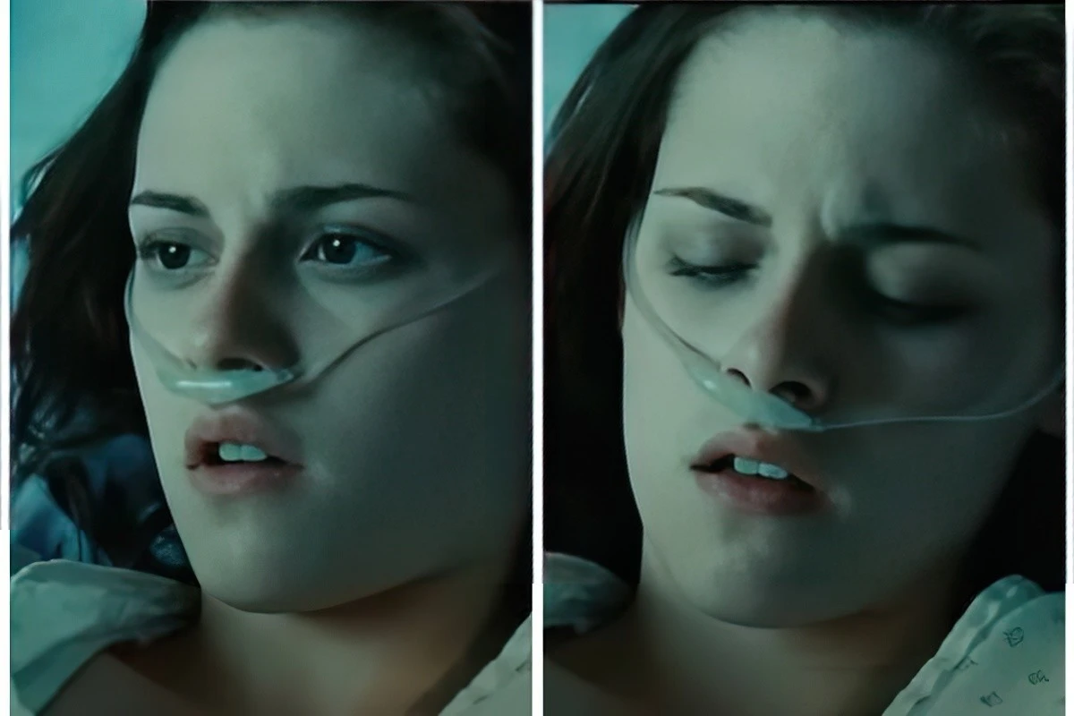 2. «Сутінки». Під час сцени, коли Белла в лікарні, щоразу, коли змінюється положення камери, змінюється і положення кисневої носової трубки»