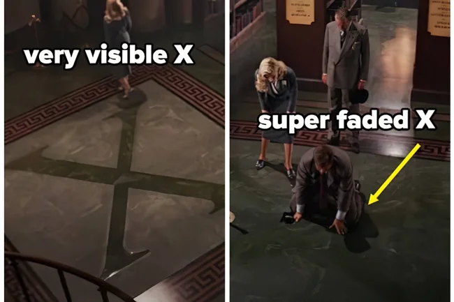 12. «Сцена в церкві/бібліотеці в Індіані Джонсі і останньому хрестовому поході». Коли герой піднімає нагору, відмітка у вигляді букви X чітко видно, коли він починає ламати підлогу в цьому місці, відмітка ледве помітна»